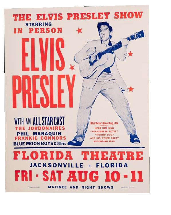 singing on the poster. Adding an image to this poster through halftone printing adds visual interest to the design and communicates the artist’s identity to the audience. Elvis, known for his performance presence in this photo, can be identified and recognized through this. As stated on page 4, this poster was featured in LIFE magazine, emphasizing the importance of having a visual identifier for an artist (Cosgrove 2019). The image in LIFE magazine showcased the ability of a poster to communicate information and demonstrates how a poster serves a practical purpose in addition to an artistic representation of an artist.