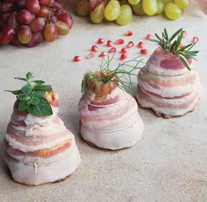 2. Formar mandonguilles de 50 gr cadascuna, embolicar-les amb les rodanxes de formatge scamorza i després amb els filets de llom.
