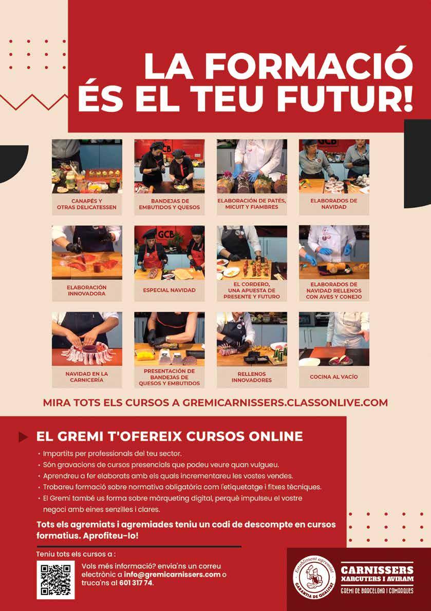 cia, un bon aprofitament de peces amb diferents tipus de talls i elaboracions que poden variar dependent de l’època de l’any. També vosaltres com a professionals, amb la vostra experiència, assessoreu als clients donant indicacions de conservació, els hi suggeriu els talls més adients depenent de les seves necessitats i compartiu receptes per treure el màxim profit dels productes, evitant el malbaratament alimentari.