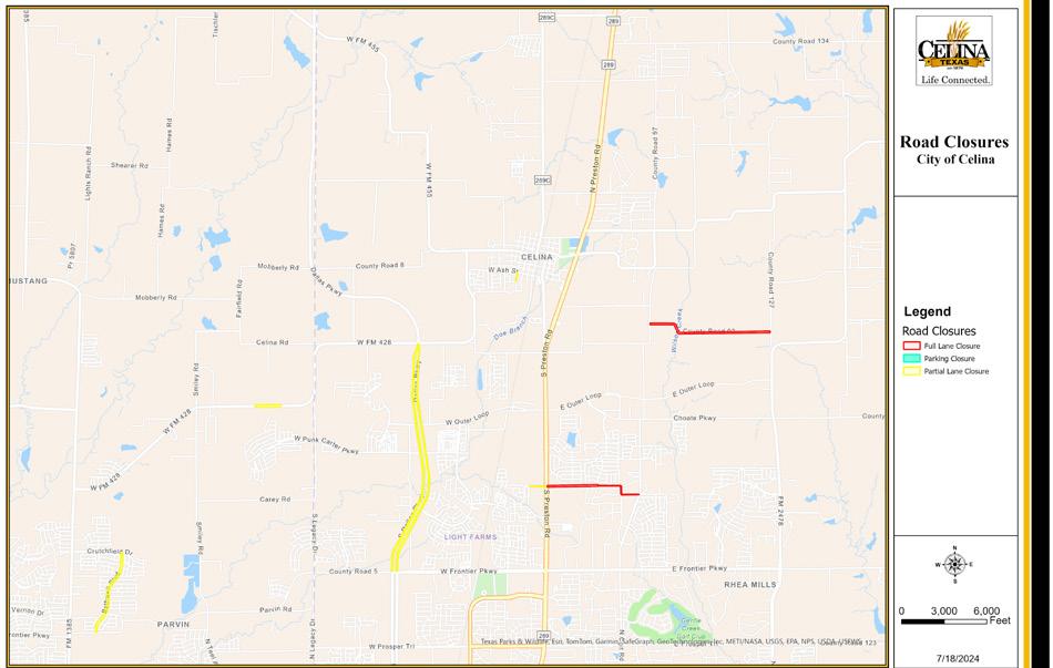 • The daily north- and southbound left lane of Dallas Parkway from Light Farms Way to FM 428