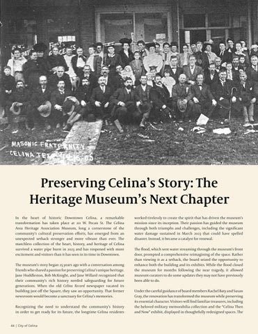 The museum’s collection continues to grow through generous donations from community members. Residents past and current have faithfully donated historic items related to the city since the doors first opened. Each artifact, photograph, and document help tell the story of Celina’s journey from its 1876 founding to its presentday vibrancy.