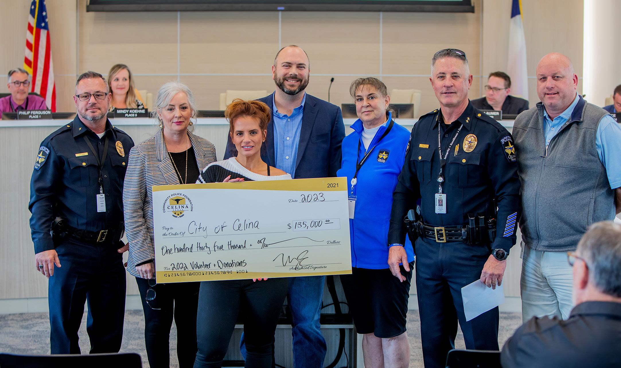 The Celina Community Police Foundation presented Chief John Cullison and Assistant Chief Brent Brown with a check for $135,000 for money raised along with hours of volunteer service.