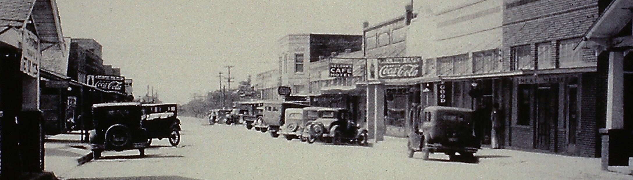 Also on Pecan was Kissner’s Department Store, a café, a hardware store, and car storage. Bob Cashon explained, “Nearly all the streets were dirt and mud back then. People would store a nice car in town at the car storage garage and then drive to and from town in an older car. Our dad got stuck in the mud right by the old football stadium once and had to be pulled out.”
