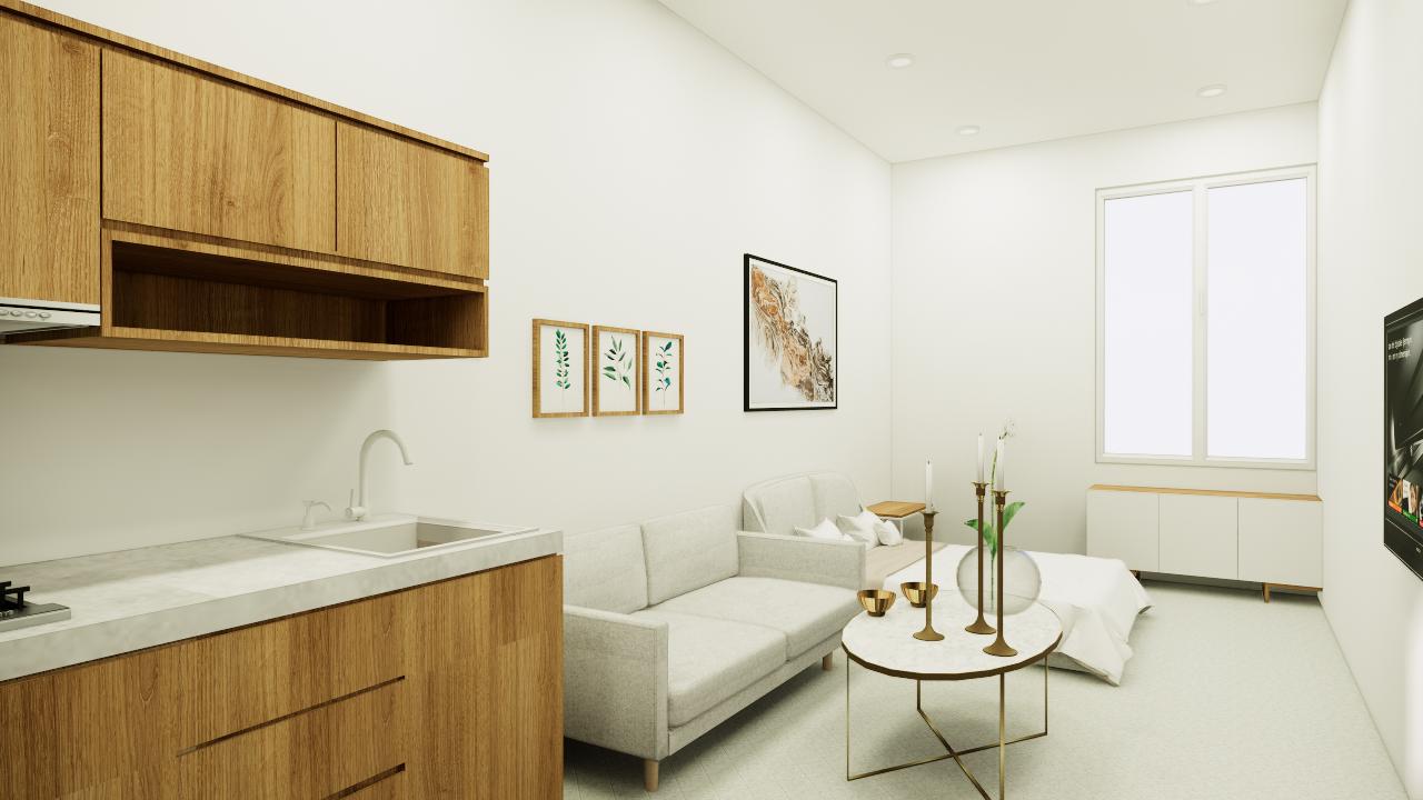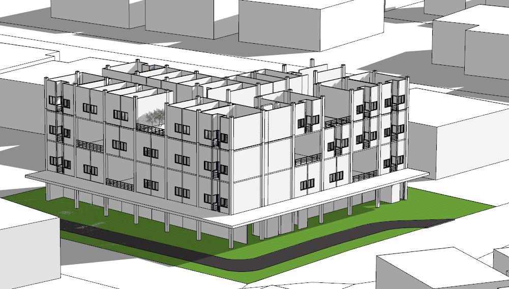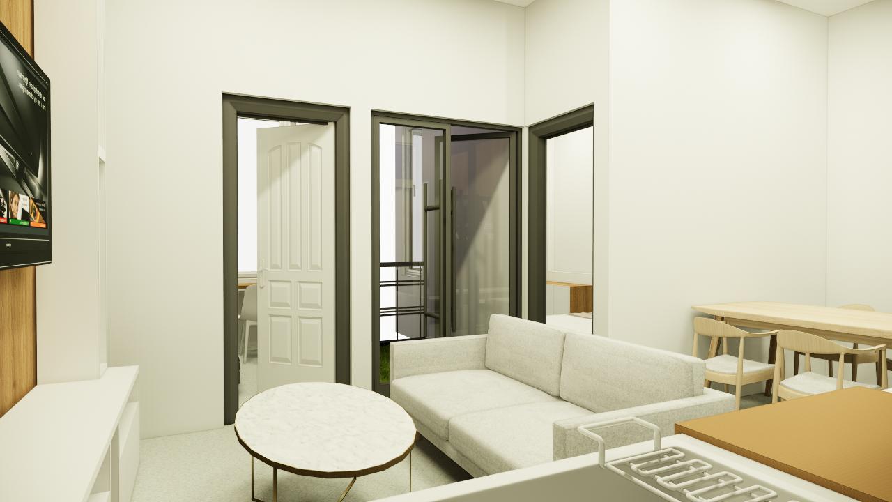 Area hunian terletak di lantai 2 hingga 4 sedangkan lantai 1 berfungsi sebagai area publik berupa pujasera (disprogramming) untuk mendukung perekonomian penghuni