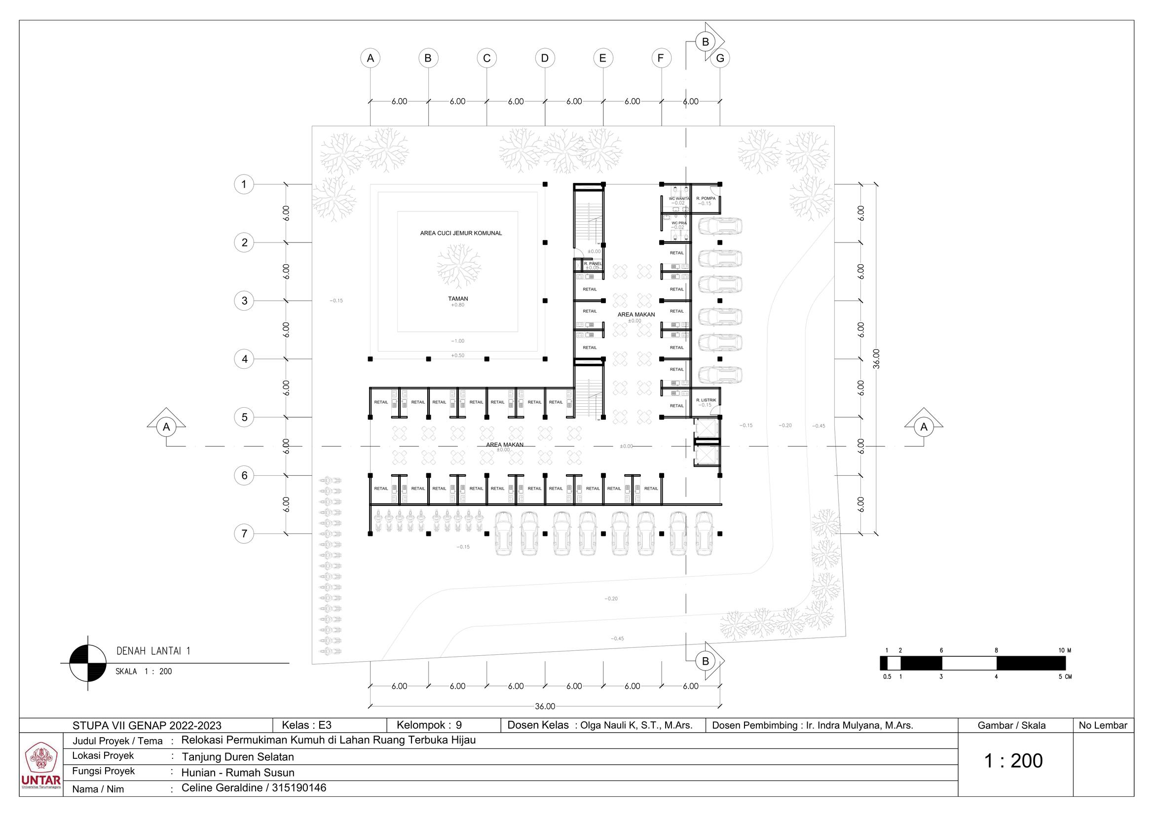 Memisahkan antara area hunian dan area komunal Area hunian terdapat di bagian depan tapak sedangkan area komunal seperti tempat cuci jemur komunal terletak di bagian belakang tapak
