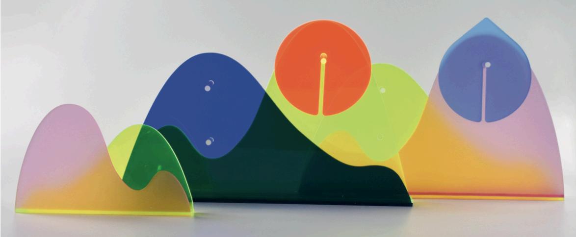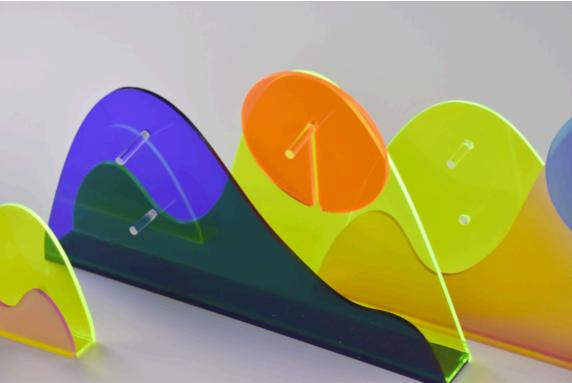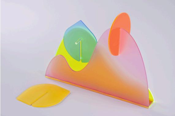 A series of coaster for your coffee table, that represents weather conditions Made with various acrylic material and texture. The mountain shaped coaster holder symbolises natural comfort. The coasters are matched with smooth, matte, surfaces and fluorescent soft and transparent colours.