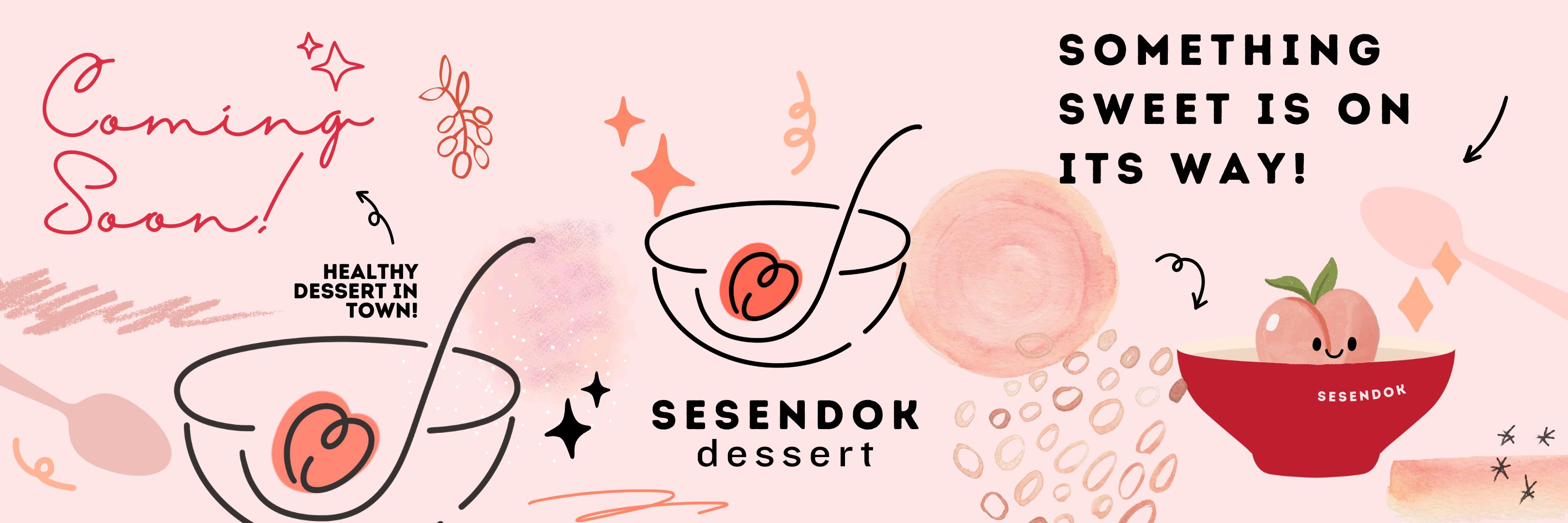 logo design and social media content design for peach gum dessert business. sesendok means one spoon of [ ] in Indonesian
