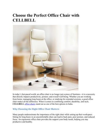 CellBell is the leading and most trusted brand for the best office and gaming chairs in India. Our ergonomic office chairs, gaming chair, office boss chairs, and basic chairs are the best in class, offering maximum ease for long hours of comfortable working. The adjustable features and advanced design of our executive chairs provide complete comfort and perfect back and neck support. Buy now at: https://cellbell.in/