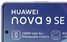 Summer Spin Your World Promotion ends 31 January 2023. Offers valid from 1 December 2022 - 13 February 2023 while stocks last. Standard RICA process applies. Once-off SIM and connection fee of R199 applies to all contracts. All prices and usage rates advertised include VAT unless otherwise stated. Please check in-store or online for colour availability of devices. For Pinnacle Top Up Terms & conditions, see page 20/21 of this Connector Book. *The Free 10GB once-off extra data on selected deals is valid for 30 days from the date of activation. Cell C reserves the right to cancel or extend any deal or promotion without notice. E&OE. For full Terms and Conditions, visit cellc.co.za or ask in-store. 22 HUAWEI DEALS 512MB ANYTIME DATA 512MB NITE DATA 30 ANY-NET MINS 30 ON-NET MINS UNLIMITED SMS* PINNACLE 1GB TOP UP 1.5GB ANYTIME DATA 512MB NITE DATA 60 ANY-NET MINS 120 ON-NET MINS UNLIMITED SMS* PINNACLE 2GB TOP UP LIMITED STOCK ON ALL DEVICES HUAWEI nova Y90 128GB FREE COVER & SCREEN PROTECTOR (IN BOX) MONTHS 36 319 MONTHS 36924 MONTHS 34936 MONTHS 24 439 MONTHS 36 449 MONTHS 61924 FREE 10GB ONCE-OFF EXTRA DATA* VALID FOR 30 DAYS MONTHS 41924 * MONTHS 36936 * FREE 10GB ONCE-OFF EXTRA DATA* VALID FOR 30 DAYS HUAWEI nova Y61 64GB MONTHS 24924 MONTHS 29924 FREE COVER & SCREEN PROTECTOR (IN BOX) FREE 10GB ONCE-OFF EXTRA DATA* VALID FOR 30 DAYS HUAWEI nova Y70 PLUS 128GB MONTHS 31924 MONTHS 36924 FREE COVER & SCREEN PROTECTOR (IN BOX) HUAWEI nova 9 SE 128GB FREE 10GB ONCE-OFF EXTRA DATA* VALID FOR 30 DAYS MONTHS 48924 * MONTHS 36399* FREE COVER & SCREEN PROTECTOR (IN BOX) FREE BLUETOOTH SPEAKER HUAWEI nova 9 128GB FREE 10GB ONCE-OFF EXTRA DATA* VALID FOR 30 DAYS MONTHS 64924 MONTHS 53936 INCLUDES HUAWEI FREELACE 4i UPSIZE YOUR DEAL FOR A LITTLE MORE TO GET YOUR FAVOURITE PHONE WITH DOUBLE THE VALUE.