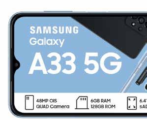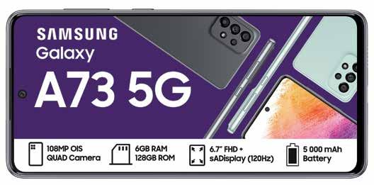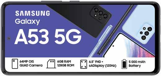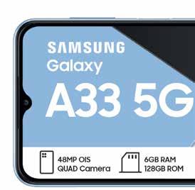 SOUTH SPINNING SAMSUNG Summer Spin Your World Promotion ends 31 January 2023. Offers valid from 1 December 2022 - 13 February 2023 while stocks last. Standard RICA process applies. Once-off SIM and connection fee of R199 applies to all contracts. All prices and usage rates advertised include VAT unless otherwise stated. Please check in-store or online for colour availability of devices. For Pinnacle Top Up Terms & conditions, see page 20/21 of this Connector Book. *The Free 10GB once-off extra data on selected deals is valid for 30 days from the date of activation. The Watches can only be added to deals as specified *. Cell C reserves the right to cancel or extend any deal or promotion without notice. E&OE. For full Terms and Conditions, visit cellc.co.za or ask in-store. 512MB ANYTIME DATA 512MB NITE DATA 30 ANY-NET MINS 30 ON-NET MINS UNLIMITED SMS* PINNACLE 1GB TOP UP 1.5GB ANYTIME DATA 512MB NITE DATA 60 ANY-NET MINS 120 ON-NET MINS UNLIMITED SMS* PINNACLE 2GB TOP UP LIMITED STOCK ON ALL DEVICES Underwritten by The Hollard Insurance Co. Ltd (Reg. No. 1952/003004/06), an authorised Financial Services Provider (FSP 17 698). Terms and Conditions apply. Cell C are a Juristic Representative of Worldwide Advisory Services (Pty) Ltd, an authorised Financial Services Provider (FSP 12 964). DEVICE INSURANCE • GET ALL- RISK COVER FOR YOUR DEVICE. R35 R45 R85 R125 R150 R200 R235 R290 R310 R365 R439 R549 R639 R7 501 TO R9 000 UP TO R1 000 R1 001 TO R2 500 R2 501 TO R5 000 R5 001 TO R7 500 R9 001 TO R12 000 R12 001 TO R15 000 R15 001 TO R20 000 R20 001 TO R25 000 R25 001 TO R30 000 R30 001 TO R35 000 R35 001 TO R42 500 R42 501 TO R50 000 Device Value All Risk (p/m) Underwritten by The Hollard Insurance Co. Ltd (Reg. No. 1952/003004/06), an authorised Financial Services Provider (FSP 17 698). Terms and Conditions apply. Cell C are a Juristic Representative of Worldwide Advisory Services (Pty) Ltd, an authorised Financial Services Provider (FSP 12 964). DEVICE INSURANCE • GET ALL- RISK COVER FOR YOUR DEVICE. R35 R45 R85 R125 R150 R200 R235 R290 R310 R365 R439 R549 R639 R7 501 TO R9 000 UP TO R1 000 R1 001 TO R2 500 R2 501 TO R5 000 R5 001 TO R7 500 R9 001 TO R12 000 R12 001 TO R15 000 R15 001 TO R20 000 R20 001 TO R25 000 R25 001 TO R30 000 R30 001 TO R35 000 R35 001 TO R42 500 R42 501 TO R50 000 Device Value All Risk (p/m) ADD A SAMSUNG GALAXY WATCH5 TO SELECTED * SAMSUNG SMART PHONE PINNACLE 2GB TOP UP DEALS MONTHS 3036 MONTHS 24 50 MONTHS 49924 SAMSUNG GALAXY A73 128GB MONTHS 24549* MONTHS 49936 * FREE 10GB ONCE-OFF EXTRA DATA* VALID FOR 30 DAYS SAMSUNG GALAXY A53 128GB MONTHS 39924 MONTHS 44924 * MONTHS 39936 * FREE 10GB ONCE-OFF EXTRA DATA* VALID FOR 30 DAYS MONTHS 34924 SAMSUNG GALAXY A33 128GB MONTHS 34936 * MONTHS 39924 * FREE 10GB ONCE-OFF EXTRA DATA* VALID FOR 30 DAYS 17 UPSIZE YOUR DEAL FOR A LITTLE MORE TO GET YOUR FAVOURITE PHONE WITH DOUBLE THE VALUE.