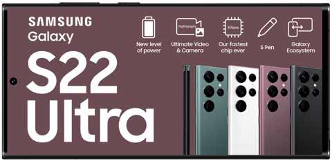 599 99924 CONTRACT DEALS SAMSUNG GALAXY Z FOLD4 256GB SAMSUNG GALAXY Z FLIP4 256GB PINNACLE 3GB TOP UP PINNACLE 2GB TOP UP SIM SIM ADD A SAMSUNG GALAXY WATCH5 PRO MONTHS 36 170 MONTHS 24 200 1299 189924 *Terms and Conditions apply. GO IN-STORE | ONLINE | CALL 084 145 CHANGE YOUR WORLD 13