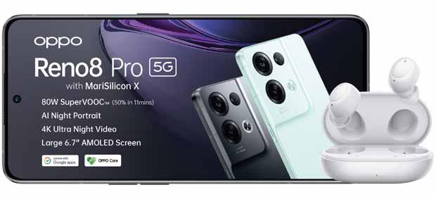 LIMITED STOCK ON ALL DEVICES *ADD AN OPPO Watch FREE ON SELECTED OPPO DEALS ON PINNACLE 2GB TOP UP MONTHS 24 100 MONTHS 36 70 LIMITED STOCK ON ALL DEVICES Summer Spin Your World Promotion ends 31 January 2023. Offers valid from 1 December 2022 - 13 February 2023 while stocks last. Standard RICA process applies. Once-off SIM and connection fee of R199 applies to all contracts. All prices and usage rates advertised include VAT unless otherwise stated. Please check in-store or online for colour availability of devices. For Pinnacle Top Up Terms & conditions, see page 20/21 of this Connector Book. *The Free 10GB once-off extra data on selected deals is valid for 30 days from the date of activation. The Watches can only be added to deals as specified. Cell C reserves the right to cancel or extend any deal or promotion without notice. E&OE. For full Terms and Conditions, visit cellc.co.za or ask in-store. OPPO RENO DEALS 25 512MB ANYTIME DATA 512MB NITE DATA 30 ANY-NET MINS 30 ON-NET MINS UNLIMITED SMS* PINNACLE 1GB TOP UP 1.5GB ANYTIME DATA 512MB NITE DATA 60 ANY-NET MINS 120 ON-NET MINS UNLIMITED SMS* PINNACLE 2GB TOP UP OPPO RENO DEALS OPPO Reno8 PRO 256GB MONTHS 24 899 FREE OPPO CARE WORTH R3 999 FREE SUPERVOOC 2.0 CHARGER WORTH R1499 FREE COVER & SCREEN PROTECTOR (IN BOX) MONTHS 94924 * MONTHS 69936 * MONTHS 24 799 OPPO Reno8 256GB OPPO Reno7 256GB MONTHS 69924 MONTHS 24749* MONTHS 54936 * MONTHS 59924 MONTHS 64924 * MONTHS 59936 * FREE 10GB ONCE-OFF EXTRA DATA* VALID FOR 30 DAYS FREE 10GB ONCE-OFF EXTRA DATA* VALID FOR 30 DAYS FREE 10GB ONCE-OFF EXTRA DATA* VALID FOR 30 DAYS FREE 10GB ONCE-OFF EXTRA DATA* VALID FOR 30 DAYS FREE OPPO ENCO WIRELESS EARBUDS WORTH R1 299 FREE OPPO CARE WORTH R3 999 FREE SUPERVOOC 2.0 CHARGER WORTH R1299 FREE COVER & SCREEN PROTECTOR (IN BOX) FREE OPPO ENCO WIRELESS EARBUDS WORTH R1 299 FREE OPPO CARE WORTH R3 999 FREE SUPERVOOC 2.0 CHARGER WORTH R1299 FREE COVER & SCREEN PROTECTOR (IN BOX) FREE OPPO ENCO WIRELESS EARBUDS WORTH R1 299 FREE OPPO CARE WORTH R3 999 FREE SUPERVOOC 2.0 CHARGER WORTH R1299 FREE COVER & SCREEN PROTECTOR (IN BOX) FREE OPPO ENCO WIRELESS EARBUDS WORTH R1 299 OPPO Reno7 Z 128GB MONTHS 84924 * MONTHS 64936 * UPSIZE YOUR DEAL FOR A LITTLE MORE TO GET YOUR FAVOURITE PHONE WITH DOUBLE THE VALUE.