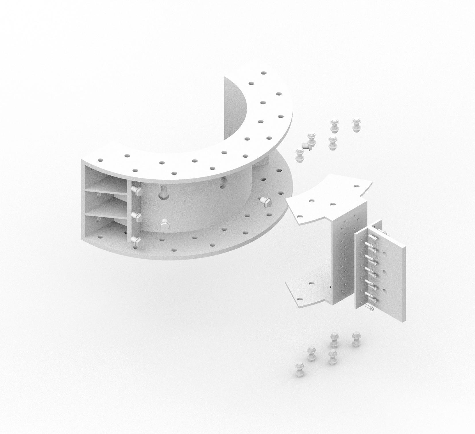 1) Rounded steel plate connector The rounded steel plates are welded together in a semi circular form, this should wrap around the concrete column