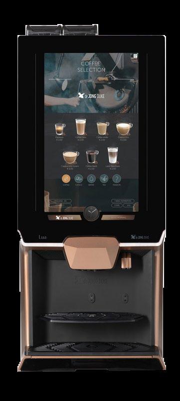 Elegant kaffemaskin med stor touchskjerm og doble beholdere for kaffebønner. CoEx-brygger som lager både filterbrygg og espresso. Lua er en kompakt halvautomatisk maskin for varme og kalde drikker. Utstyrt med en papirløs CoEx®-brygger for å lage nytraktet kaffe og espresso (avhengig av innstilling). Betjenes enkelt ved å bruke berøringsskjermpanelet i fronten. Sensor for kopp. 4 ingrediensbeholdere, 2 stk for hele bønner, 2 stk for kakao og melk. Kapasitet grutbeholder: ~ 180 kopper kaffe.