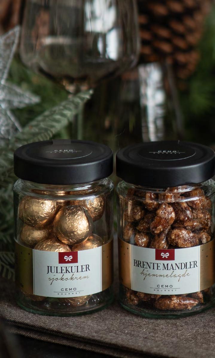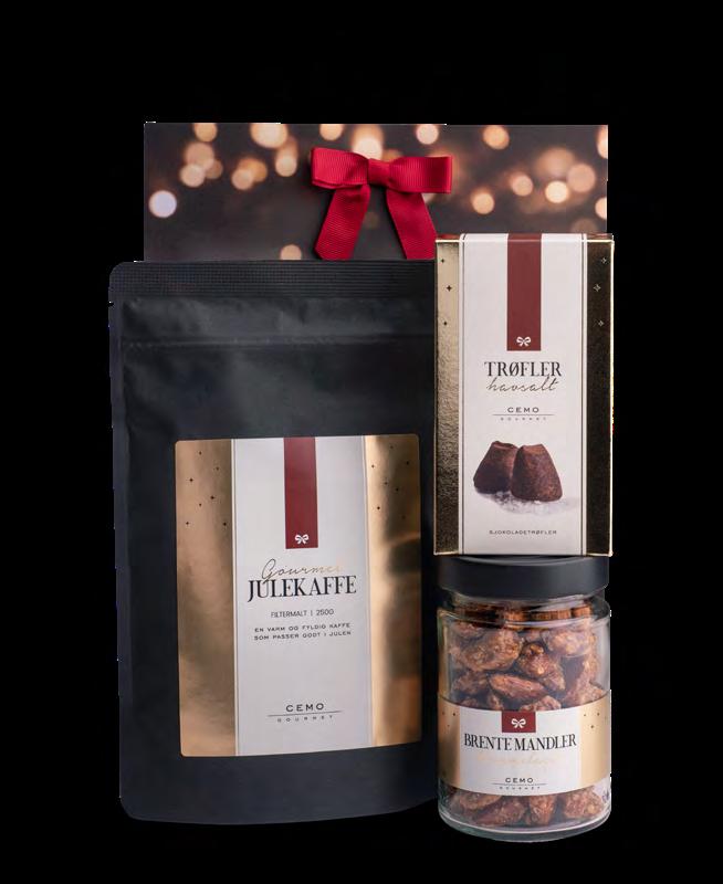 Inneholder Julekaffe, Juletrøfler, Brente mandler, Hasselnøttsjokolade, Bringebærdrops og Tastingboks med sjokolademandler og lakriskuler. KR: 649,-