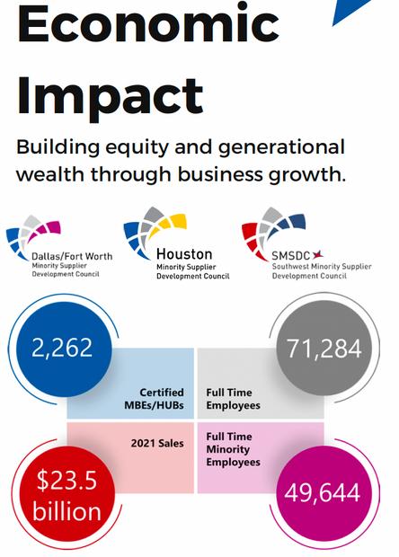The MBE community has been a vital contributor to the Texas economy for 50 years. Their businesses have created job opportunities and have supported economic growth across the state. MBEs support policies, programs, and investments that encourage equity of opportunity, create accountability for diverse business inclusion, and goal reporting transparency. Through the adoption of inclusive economic development policies, they stimulate the growth of small businesses across the state.