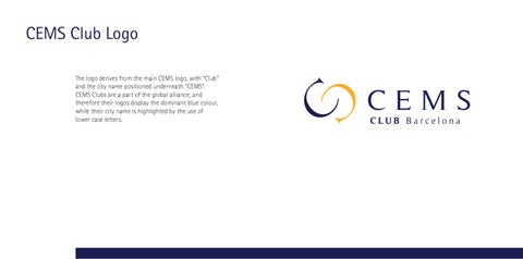 CEMS Club Logo The logo derives from the main CEMS logo, with “Club” and the city name positioned underneath “CEMS”. CEMS Clubs are a part of the global alliance, and therefore their logos display the dominant blue colour, while their city name is highlighted by the use of lower case letters.