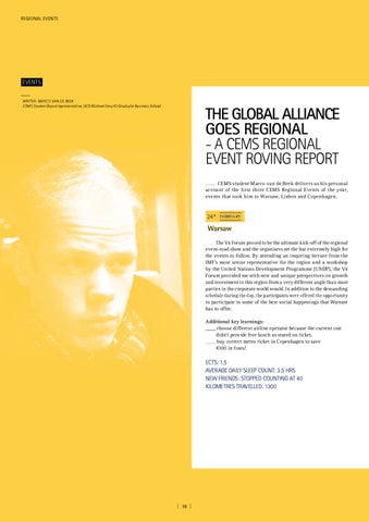 The global alliance goes regional - a CEMS regional event roving report CEMS student Marco van de Beek delivers us his personal account of the first three CEMS Regional Events of the year, events that took him to Warsaw, Lisbon and Copenhagen.