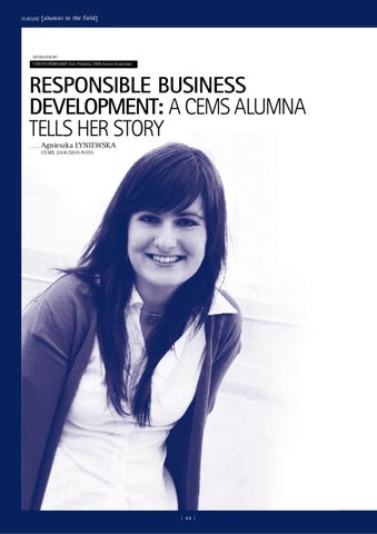 Responsible business development: a CEMS alumna tells her story Agnieszka Łyniewska CEMS 2008 (SGH-NHH)