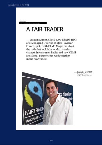A Fair Trader Joaquin Muñoz, CEMS 1996 (ESADE-HEC) and Managing Director of Max HavelaarFrance, spoke with CEMS Magazine about the path that took him to Max Havelaar, changes in consumer habits and how CEMS and Social Partners can work together in the near future.