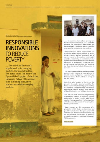 Two thirds of the world’s population live in emerging markets. They earn less than five euros a day. The Base of the Pyramid (BoP) project of the Aalto University School of Economics aims at finding innovative business models for emerging markets.