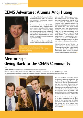 Mentoring Giving Back to the CEMS Community Katarina Paulickova - CEMS Alumna 2010 (VSE-LSM), now working as HR Business Partner in Plzensky Prazdroj