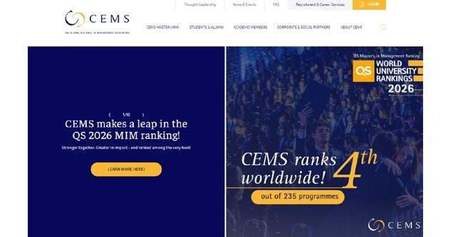 Most information is available on the public website, including the CEMS school pages , where students can find general information, details about the CEMS MIM programme, and the CEMS MIM curriculum for each school. On a school page, students typically find an overview of the school and campus, list of courses, information on the programme structure, as well as practical details related to student life and local support services in the different tabs. More personalized services are located on the CEMS portal, where students have to log in. The CEMS portal offers the students the option to: