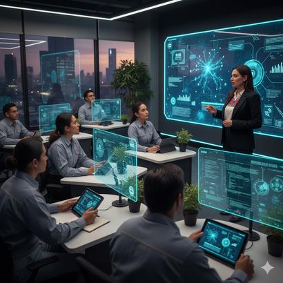 "Representaenunaimagena personastomandounacapacitación laboralsobrelainteligenciaartificial paraobtenernuevashabilidades parasusempleos"