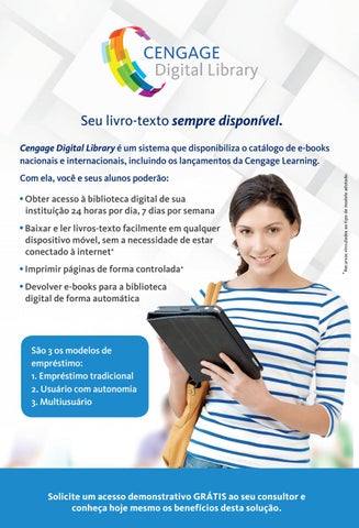 Obter acesso à biblioteca digital de sua instituição 24 horas por dia, 7 dias por semana Baixar e ler livros-texto facilmente em qualquer dispositivo móvel, sem a necessidade de estar conectado à internet* Imprimir páginas de forma controlada*