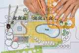 60. Un jardín rectangular de 27 pies de largo por 19 pies de ancho es una de las características de un diseño de paisajes de un parque comunitario.