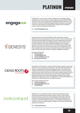 Genesys® powers more than 25 billion of the world’s best customer experiences each year. We put the customer at the centre of everything we do and passionately believe that great customer engagement drives great business outcomes. More than 10,000 companies in over 100 countries trust the industry’s #1 customer experience platform to orchestrate seamless omnichannel customer journeys and build lasting relationships. With a strong track record of innovation and a never-ending desire to be first, Genesys is the only company recognised by top industry analysts as a leader in both cloud and on-premise customer engagement solutions. Contact: Neil Titcomb T: 07919 173376 T: +44 (0)2038 083 999 E: neil.titcomb@genesys.com W: www.genesys.com/uk
