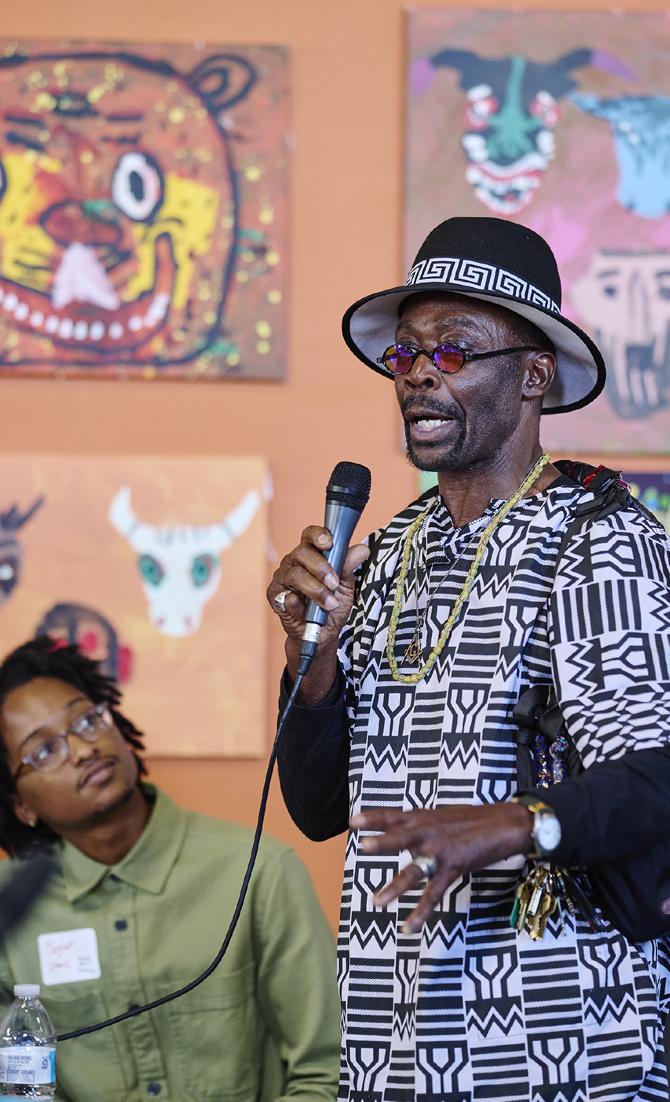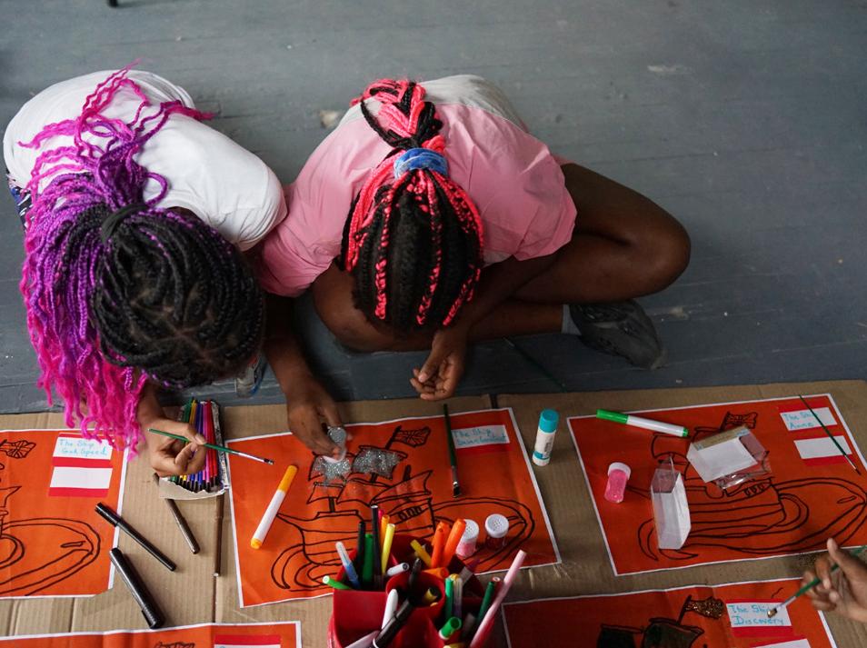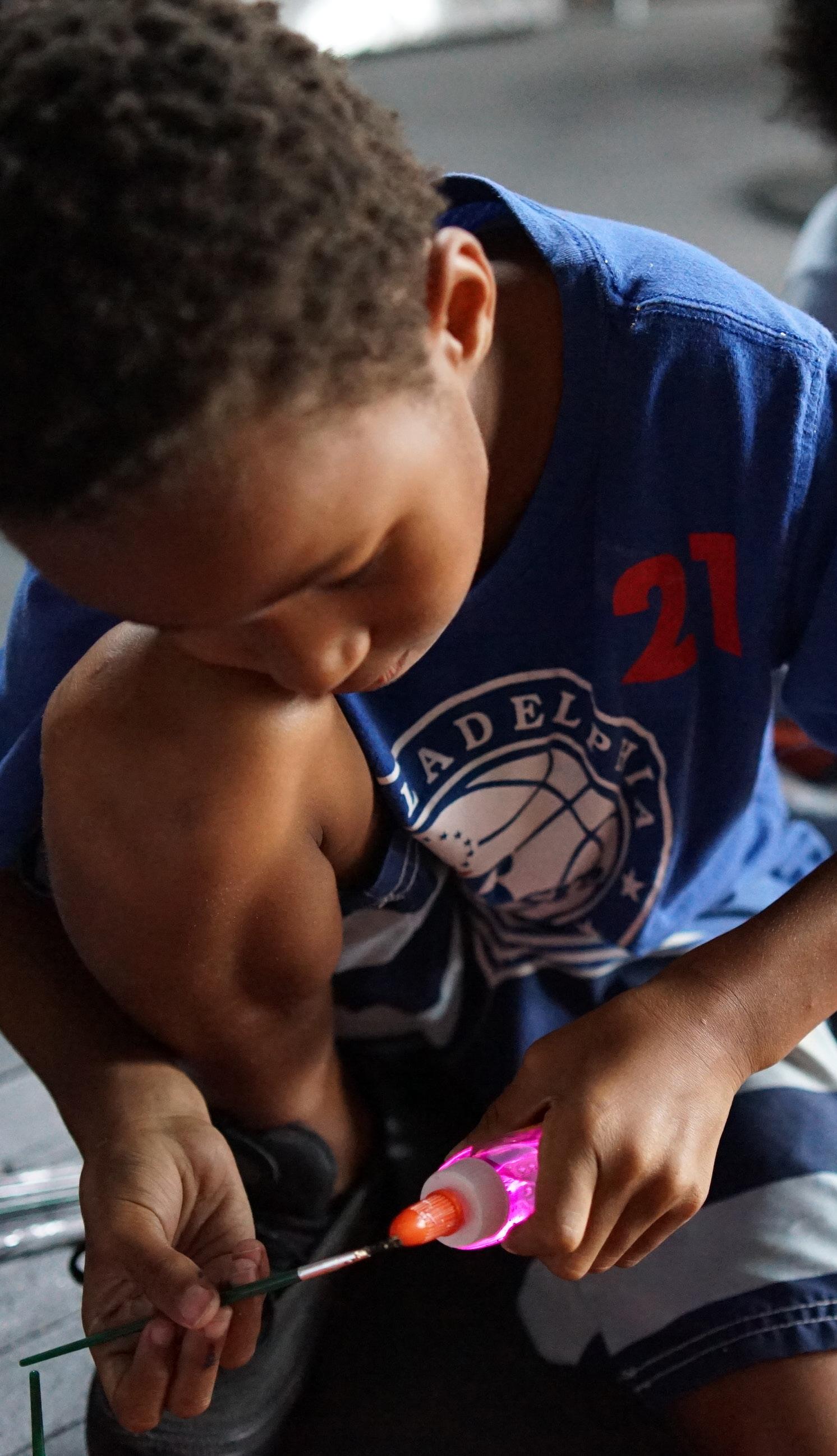 Our annual six-week creative arts summer camp focuses on teens between the ages of 13 and 17. This year the theme primarily centered around theater art. In partnership with the Work Ready Program and supported by Philadelphia ReCAST , all participants worked on public speaking, answering prompts, and the technical aspects of stage production such as operating lights, cameras, microphones, and speakers. Participants also contributed to the beautification of our creative arts space, the Black Urban Theater. Using chalk walls they created inspiring and colorful messages throughout the theater. Much of this work was reported over social media through a regular news style program called the “Fatima Report” named after one of our participants. In addition to our work with teens we welcomed some of the younger neighborhood children to the theater to produce a play inspired by the book “You Gotta Meet Mr. Pierce! The Storied Life of Folk Artist Elijah Pierce” by Carmela Van Vleet and Chiquita Mullins Lee. The creative work of our young people including a video they produced was shared at our Black Man’s Conference held on September 30.