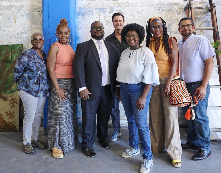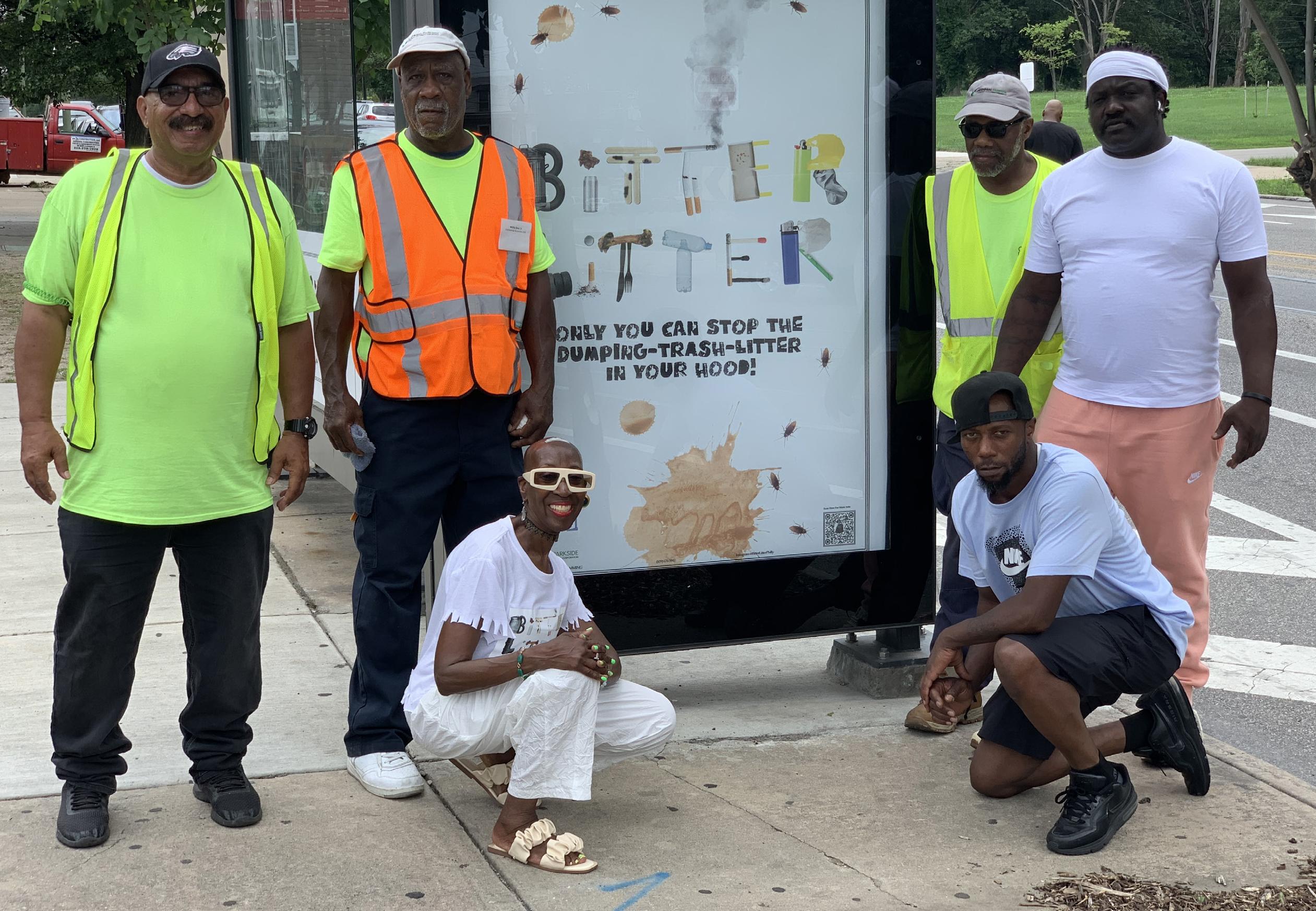 As pictured from top left to bottom right: Chris Spahr Executive Director, Tashia Rayon Director of Community Cultural Programming, DaShaun Smith Youth Coordinator, Sandra Calhoun Director of Sanitation and Environmental Programming, Jessi Ray Koch Equitable Development Project Manager, Willie Doe Jr. Clean and Green Team Supervisor, Jamar Butts Clean and Green Team Ambassador, Lloyd Backus Clean and Green Ambassador, Anthony Farmer Clean and Green Ambassador, Marvin Green Clean and Green Ambassador.