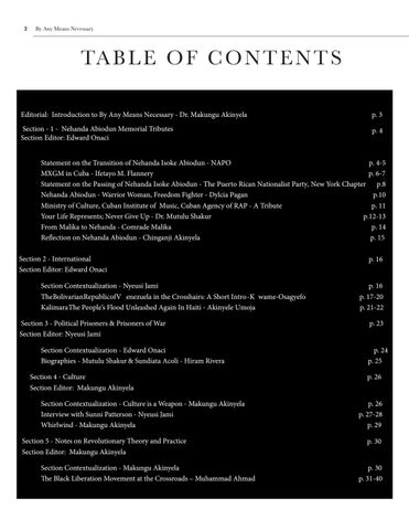 TA B L E O F C O N T E N T S Editorial: Introduction to By Any Means Necessary - Dr. Makungu Akinyela