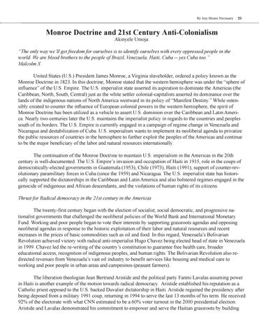 Monroe Doctrine and 21st Century Anti-Colonialism Akinyele Umoja