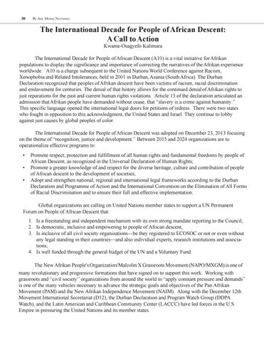 The International Decade for People of African Descent: A Call to Action Kwame-Osagyefo Kalimara