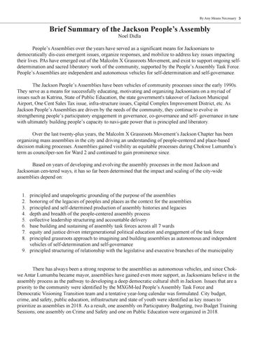 Brief Summary of the Jackson People’s Assembly Noel Didla