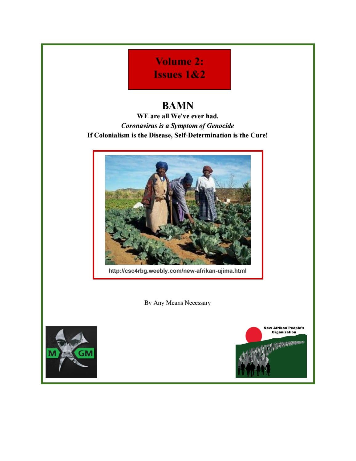 WE are all We've ever had. Coronavirus is a Symptom of Genocide If Colonialism is the Disease, Self-Determination is the Cure! The Black Nation in the United States is dying from the COVID-19 pandemic at higher rates in many cities across the U.S. empire. While our enemies and oppressors slander us and claim that our people are dying in such large numbers because we aren’t taking this disease seriously, it is well known that this disease has a heavier impact on people with underlying health issues. Black people are among those who are disproportionately inundated with a wide array of health issues. The masses of our people do not have access to quality health care and are already a large part of the legion of the uninsured, being the 2nd largest population without medical insurance in the empire. We already suffer from higher rates of heart disease, asthma, and diabetes than the “national” average. Once again, so-called racial disparities—our colonial reality under U.S. imperialism— are a manifestation of the systematic genocide our people must contend with.
