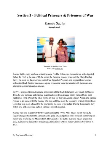Kamau Sadiki, who was born under the name Freddie Hilton, is a humanitarian and a devoted father. In 1969, at the age of 17, he joined the Jamaica, Queens branch of the Black Panther Party. He spent his days working in the Free Breakfast Program, and he spent his evenings selling the Black Panther newspaper, doing organizing work for tenants with slumlords, and attending political education classes. In 1971, he joined the underground component of the Black Liberation Movement. In October 1973, he was captured and indicted in connection with an alleged Bronx bank robbery from September 1972. One of the other people on trial for this was Assata Shakur. Assata and Kamau refused to go along with the charade of a trial and they spent the long days of court proceedings locked up in a room adjacent to the courtroom, by order of the judge. During this process, they fell in love and conceived a child, Kamau’s second daughter. Kamau was held in captivity for five years during the 1970s. After he got out on parole, he legally changed his name to Kamau Sadiki, got a job, and put his entire focus on supporting his family and practicing his Muslim faith. He was out of the public eye until he got arrested in 2002. Kamau was accused of murdering Atlanta Police Officer James Green on November 3, 1971.