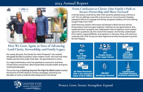 The Center for Heirs' Property empowers under-resourced families and small-acreage landowners to safeguard their land and homes for generations to come. Working in deep relationship with landowners and partners, we provide legal support, financial education, and help them grow working landscapes that sustain generational wealth.