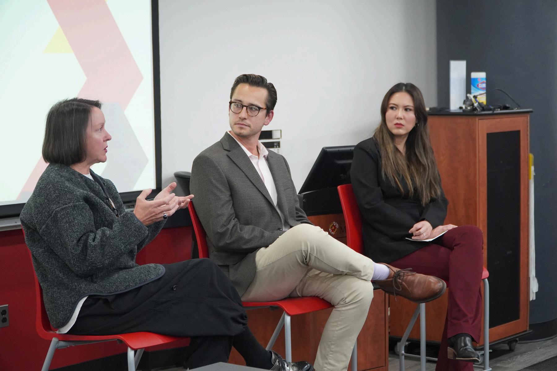 On October 30 , seventy members from professional business fraternities gathered for our Fall Interfraternal case competition focused on ESG investing and social impact, drawing an audience of more than 150 students. The event fostered experiential learning and inspired creative, real-world solutions to pressing sustainability challenges. A panel of six alumni and graduate students from various programs evaluated the presentations and celebrated the winning team from Phi Chi Theta.