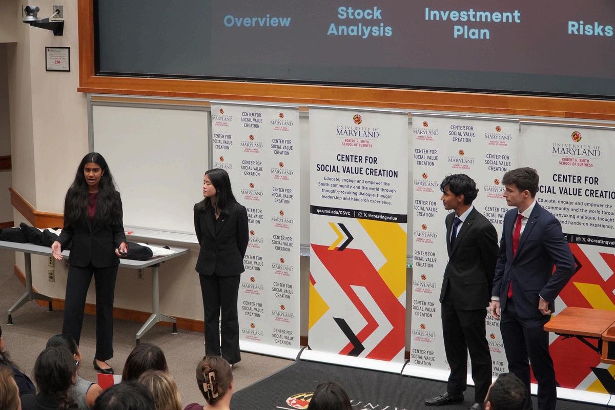 On March 12 , Maryland students Marvi Shroff, Eileen Chen, Meilin Yuan, and Jiayi Wang earned first place at the 14 annual Milgard Invitational Case Competition, beating out 19 other teams from 3 continents and bringing global recognition to the Smith School of Business. After winning the Smith Invitational Case Competition hosted by the Center for Social Value Creation, the team advanced to compete against top international universities and impressed judges with their strategic recommendation to invest in Airbus. Their success highlights Smith students’ growing expertise in sustainable finance and impact-driven consulting.