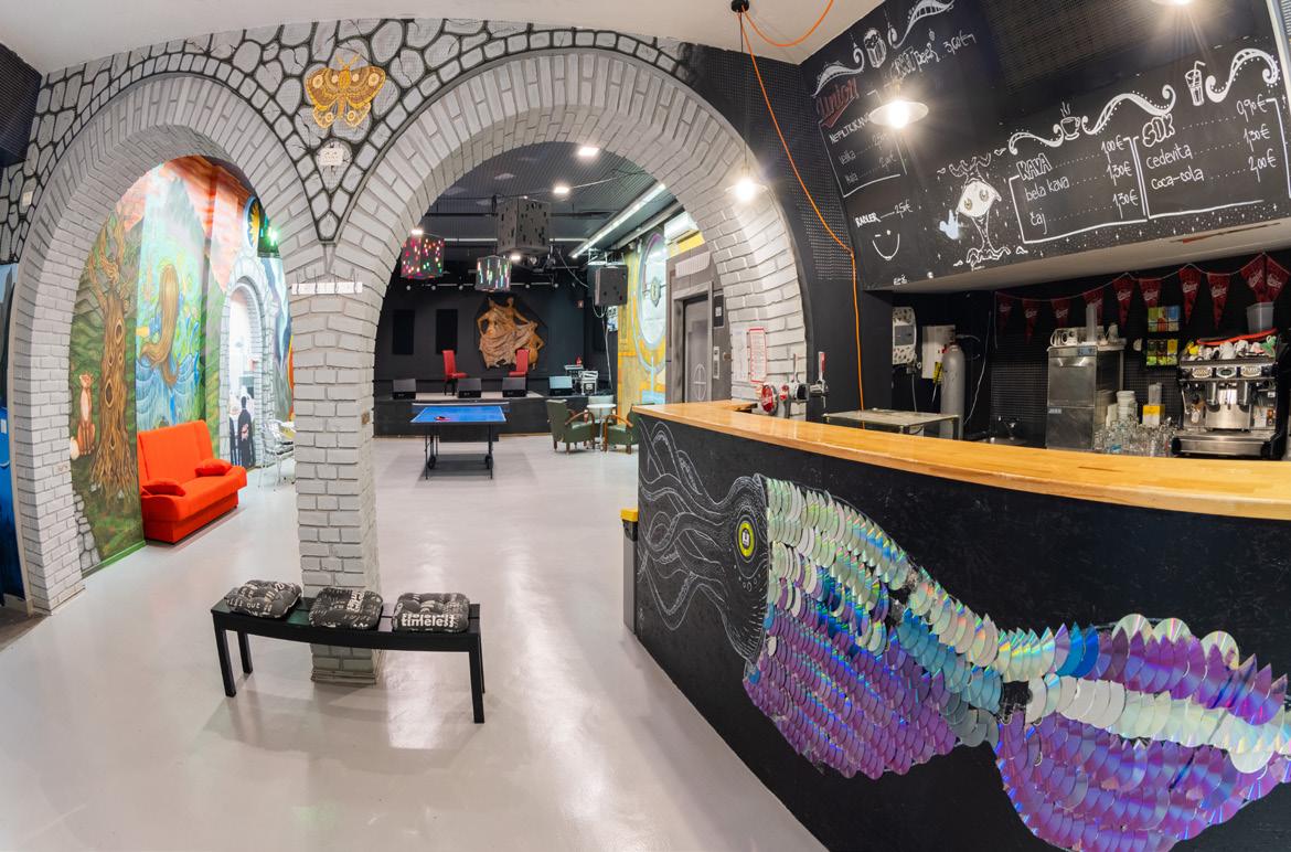 This is the hall of the centre – a place where you can hang out or pass the time just the way you like it. It also hosts concerts, stand-up events, theatre performances, literary events, travel talks and all kinds of presentations.