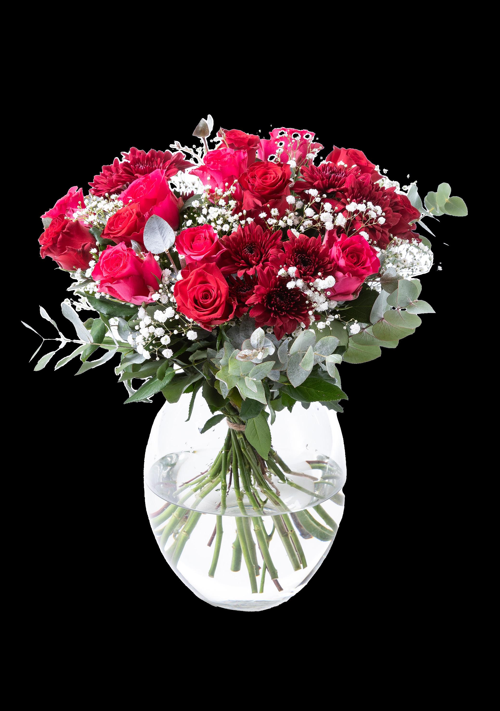 Mester Grønn Rosebukett med brudeslør og krysantemum, 650,-