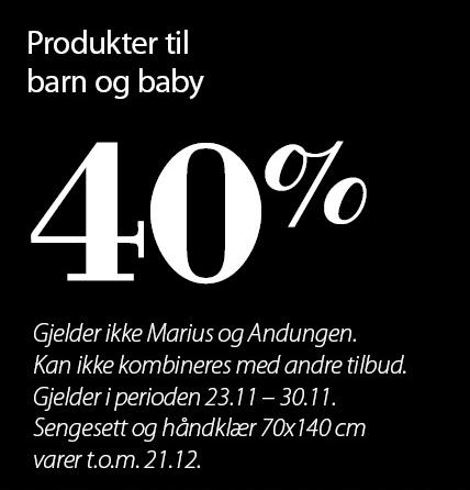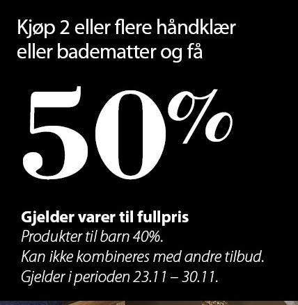 *Gjelder ikke voks- og akrylduker og allerede nedsatte varer, uke 47-48 -50%