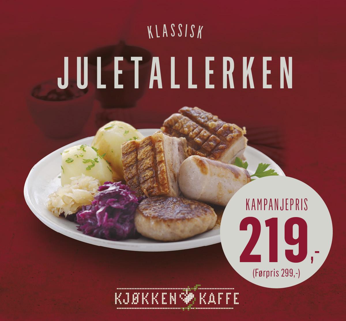 Ribbe, julepølse, rødkål, epler, småpotet og julesaus 384,-