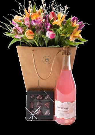 Tulipanbukett i gavepose 380,Konfekt 120,- Limonade 100,-