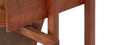 Creman: “Aan de uitstraling zie ik vaak meteen of het een echte is, maar de materialen en technieken geven uiteindelijk de doorslag. Daarvoor kijk ik aan de onderzijde, naar hoe de zitting en rugleuning zijn bevestigd en van welk materiaal ze zijn. Ook het type deuvel en de lijmsoort zijn belangrijk. Een etiketje of brandmerk van Rietvelds timmerman Gerard van de Groenekan maakt het natuurlijk helemaal duidelijk.”