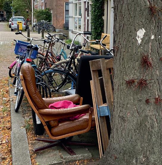 In de aanloop tot deze tentoonstelling maakten we een appgroep aan, waarin we foto’s deelden van stoelen die we bij het vuilnis aantroffen. Nu we terugkijken op de honderden foto’s van ‘verweesde’ stoelen, lijkt de onschuld ervan verdwenen en zien we vooral de immense hoeveelheid wegwerpobjecten die we als mens voortbrengen. De stoel is hier niet langer de troon van de jarige of de steun en toeverlaat in ons bestaan, maar een tijdelijk gebruiksartikel dat is overgeleverd aan de grillen van de eigenaar. Dat deze manische overproductie moet stoppen staat buiten kijf. Ook aan deze noodzaak besteedt Stoel neemt stelling aandacht, door stil te staan bij het maakproces en nadrukkelijk ruimte te bieden aan innovatieve ontwerpen waarbij circulariteit het uitgangspunt vormt.