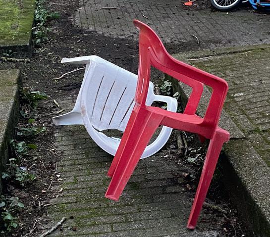 “Gemiddeld komen er bij ons zo’n twintig stoelen per dag binnen, meestal tuin- en eetkamer stoelen. Maar laatst stond er een massagestoel. Het is trouwens niet de bedoeling dat iemand ze mee naar huis neemt. Alles wordt gerecycled! Plastic stoelen worden verwerkt tot granulaat korrels, houten stoelen gaan naar de spaanplaat industrie of eindigen als pallet. En bureaustoelen worden vakkundig uit elkaar gehaald. Mijn ideale stoel…? Een luiwammes stoel! Op mijn werk
